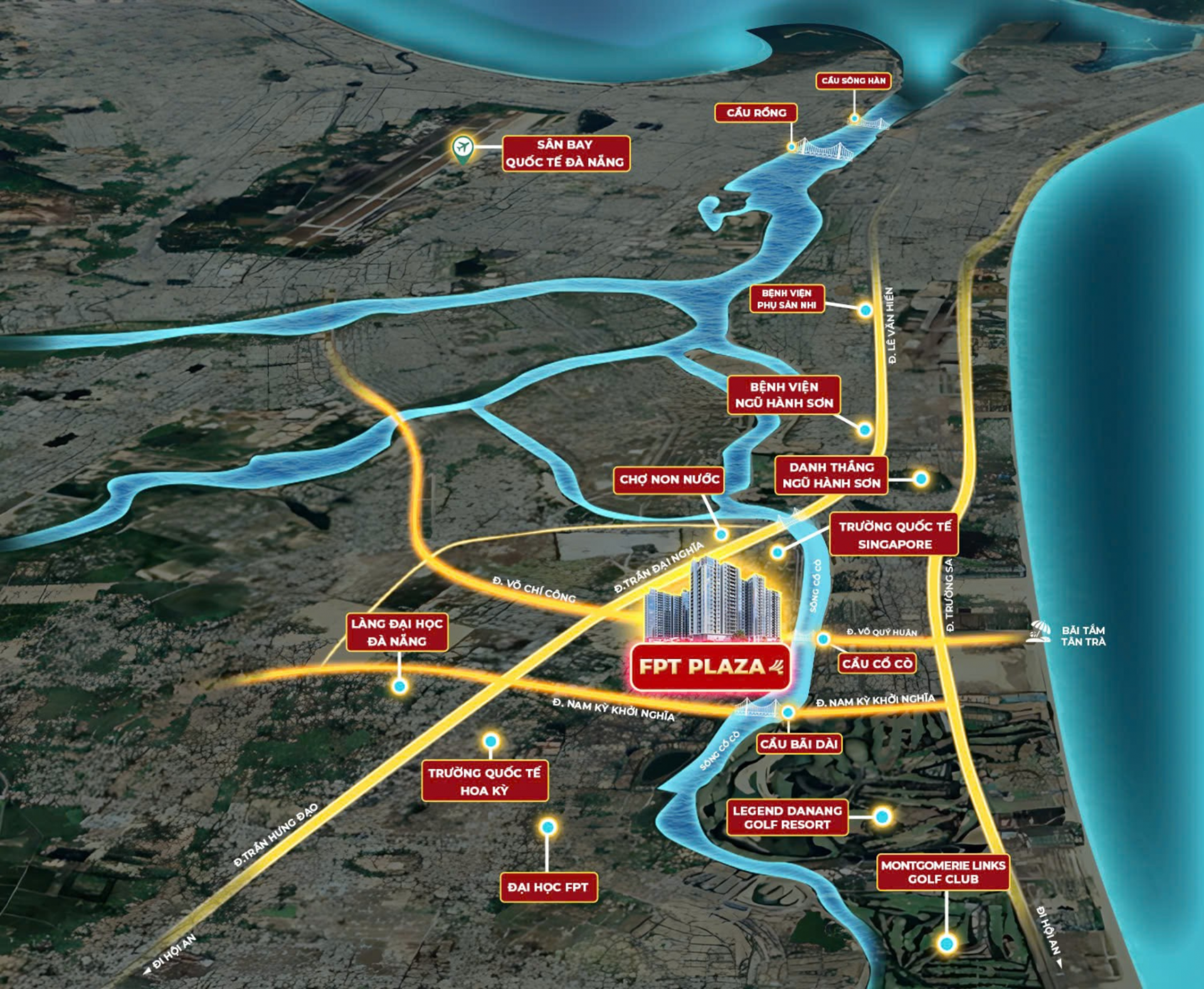 FPT Plaza 4 tọa lạc tại khu đô thị FPT City - khu vực được định hướng trở thành trung tâm công nghệ, giáo dục và đổi mới sáng tạo của Đà Nẵng. Với lợi thế nằm trong lòng một khu đô thị quy mô lớn, dự án thừa hưởng trọn vẹn hệ sinh thái đồng bộ từ hạ tầng, giáo dục, công nghệ đến tiện ích sống.