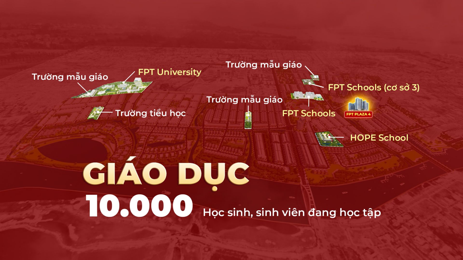 Sống tại FPT Plaza 4, cư dân được thụ hưởng trọn vẹn hệ sinh thái giáo dục - công nghệ top đầu ngay trong khu đô thị. Từ trường mầm non, FPT Schools (hệ thống giáo dục chất lượng bao gồm 3 cấp Tiểu học, Trung học cơ sở và Trung học phổ thông) đến FPT University, mọi cấp học đều được quy hoạch bài bản, tạo nên một hành trình giáo dục liền mạch cho thế hệ trẻ.